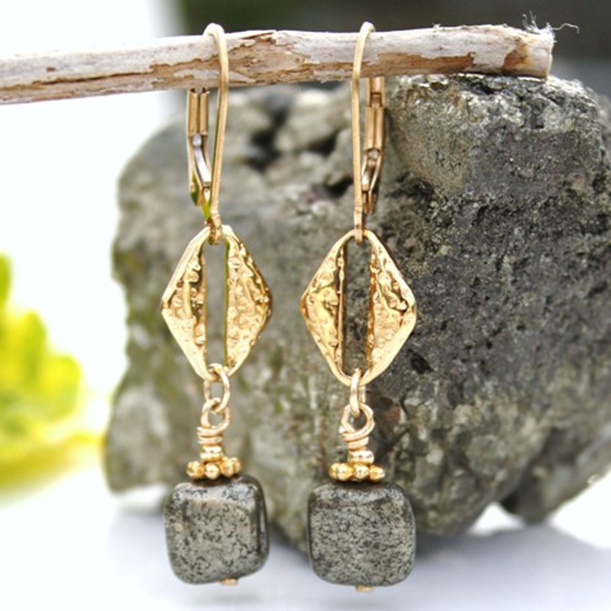 - 8mm Pyrite squares, gold plated diamonds & gold filled - Made in Canada